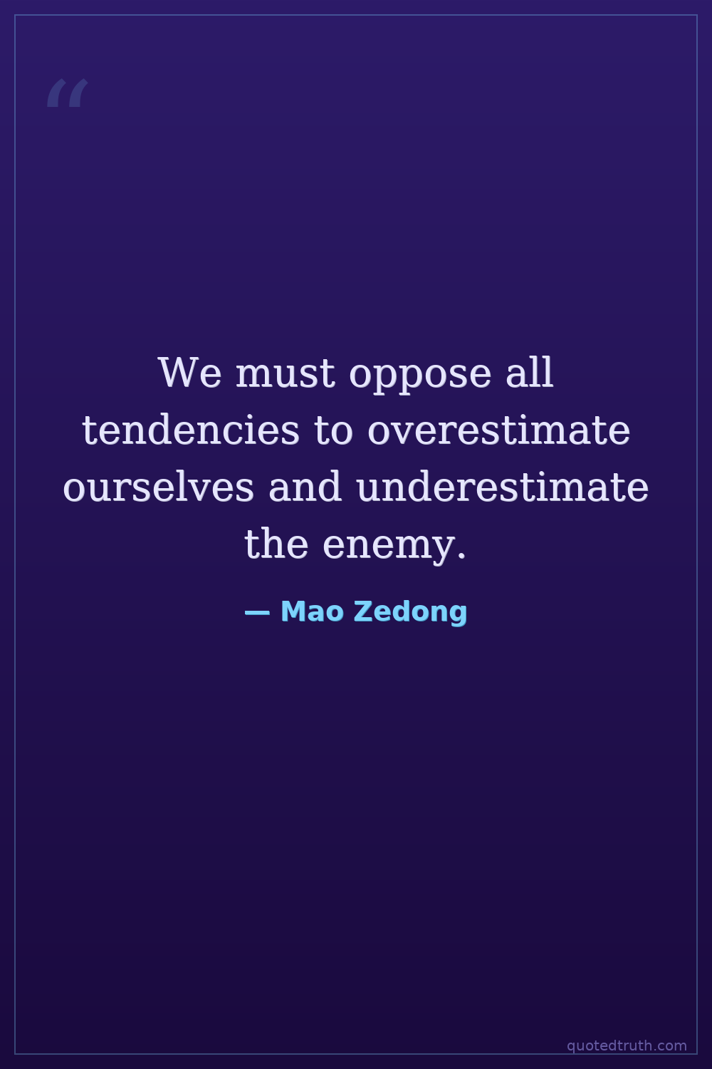 We must oppose all tendencies to overestimate ourselves and underestimate the enemy.