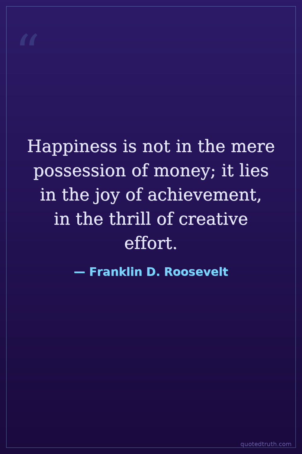 Happiness is not in the mere possession of money; it lies in the joy of achievement, in the thrill of creative effort.