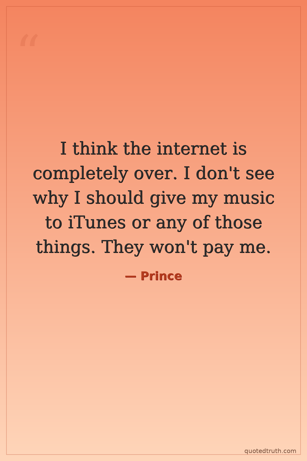 I think the internet is completely over. I don't see why I should give my music to iTunes or any of those things. They won't pay me.