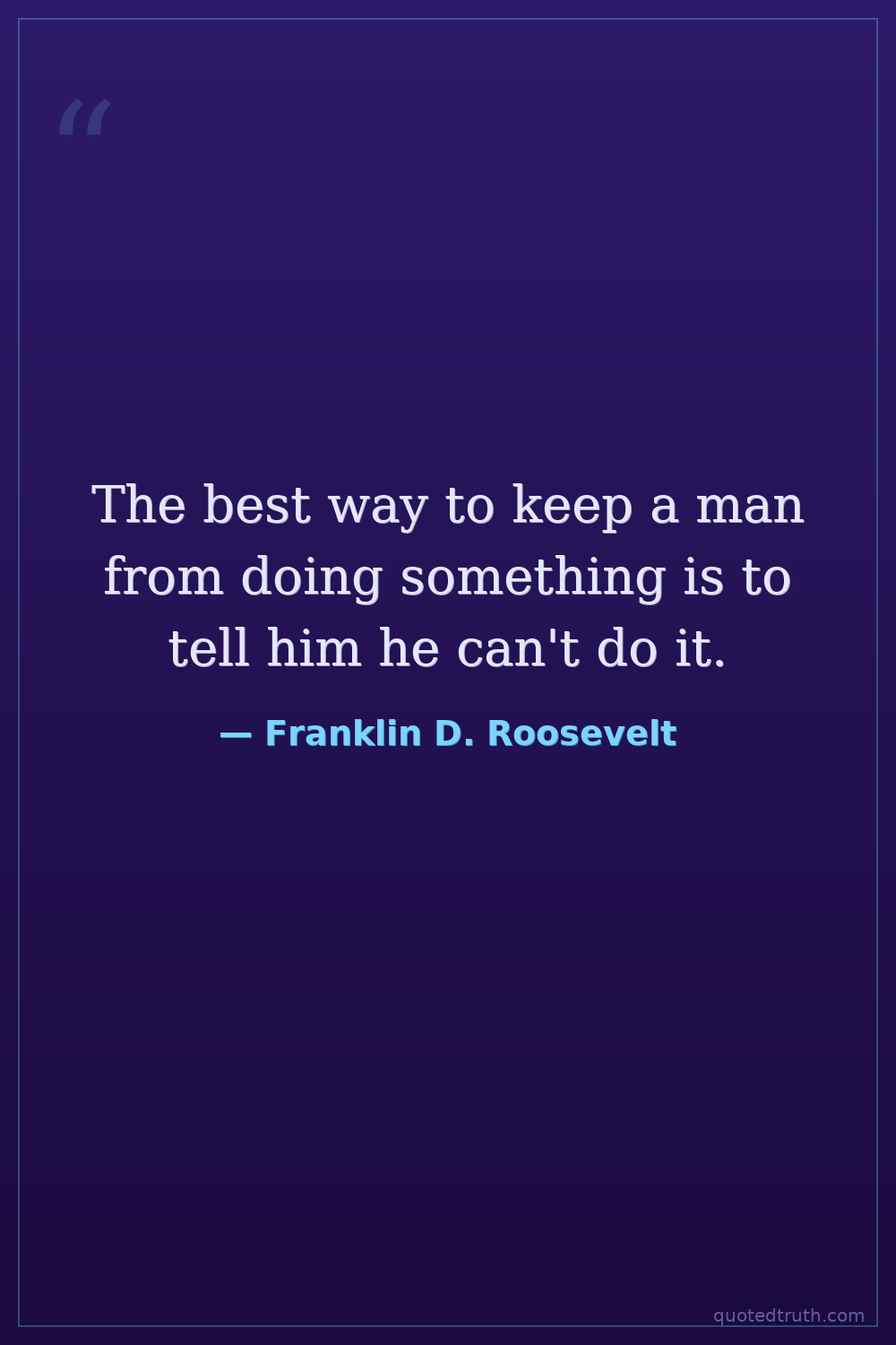 The best way to keep a man from doing something is to tell him he can't do it.