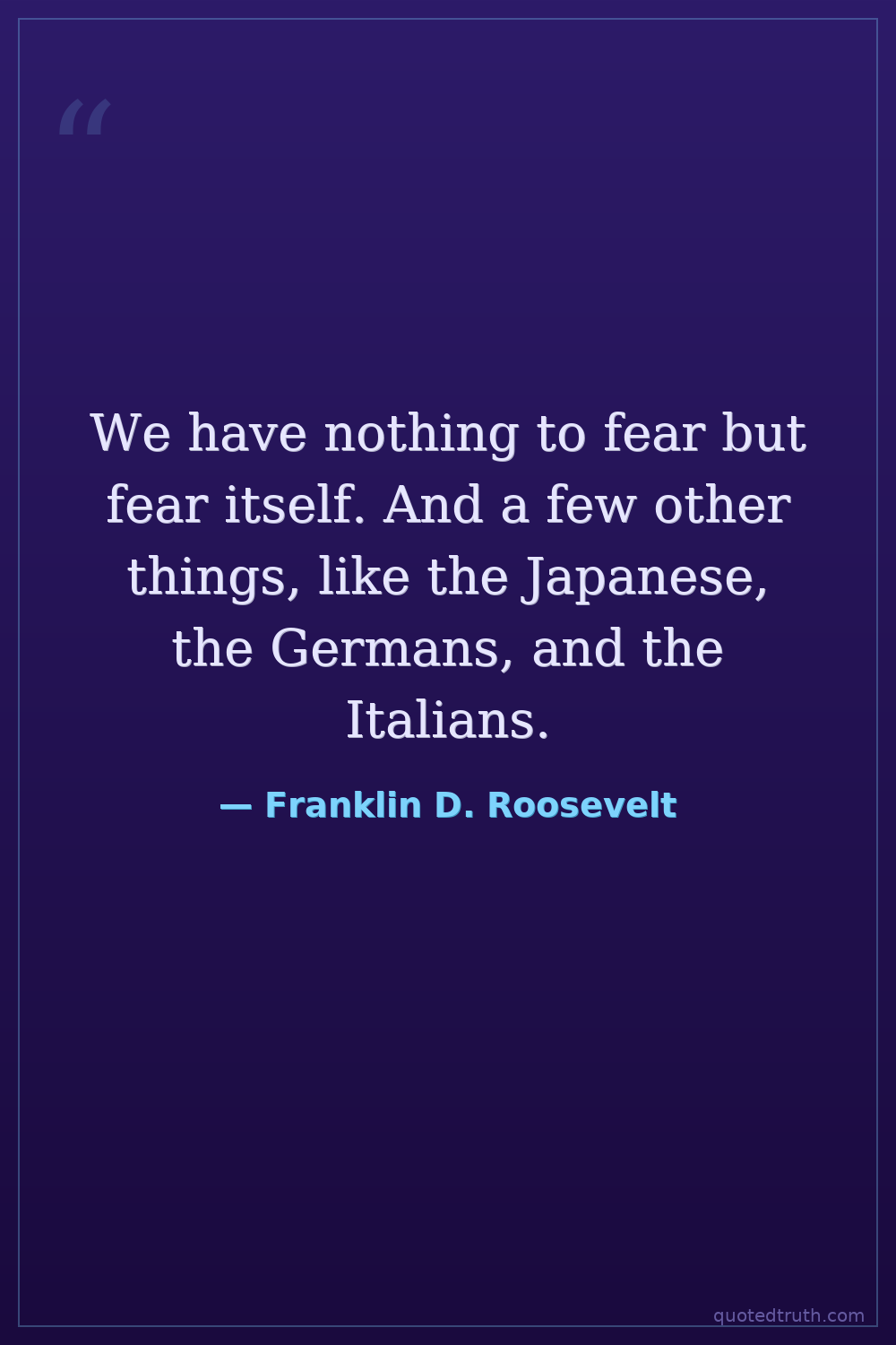 We have nothing to fear but fear itself. And a few other things, like the Japanese, the Germans, and the Italians.