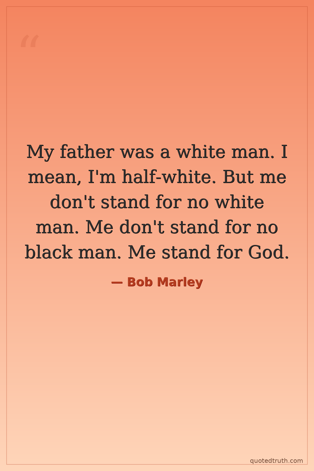 My father was a white man. I mean, I'm half-white. But me don't stand for no white man. Me don't stand for no black man. Me stand for God.