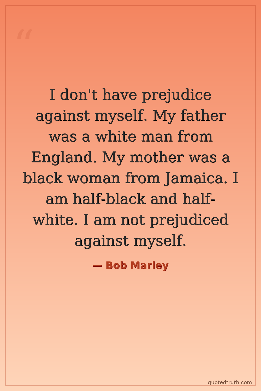 I don't have prejudice against myself. My father was a white man from England. My mother was a black woman from Jamaica. I am half-black and half-white. I am not prejudiced against myself.
