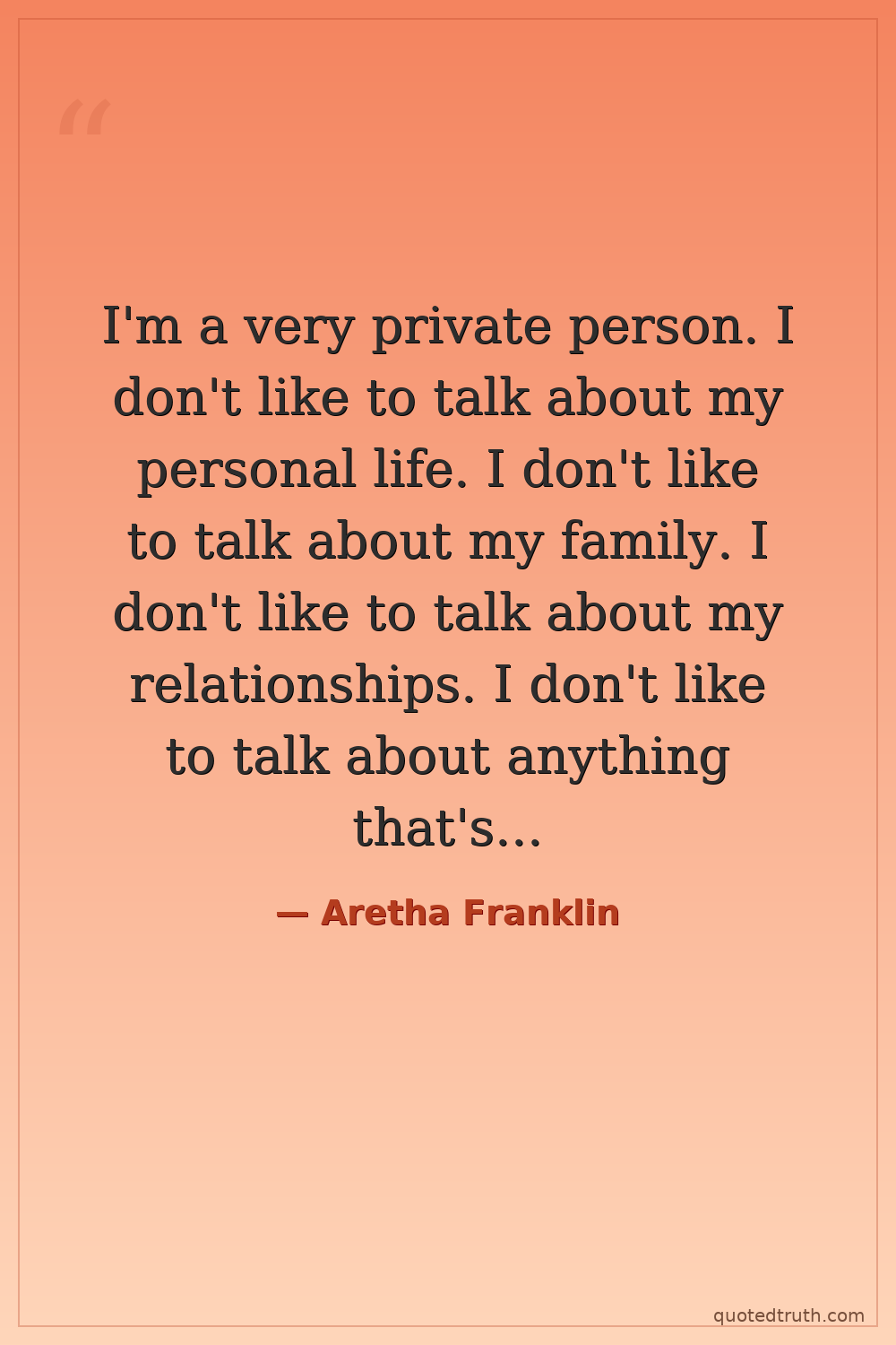 I'm a very private person. I don't like to talk about my personal life. I don't like to talk about my family. I don't like to talk about my relationships. I don't like to talk about anything that's not about my music.