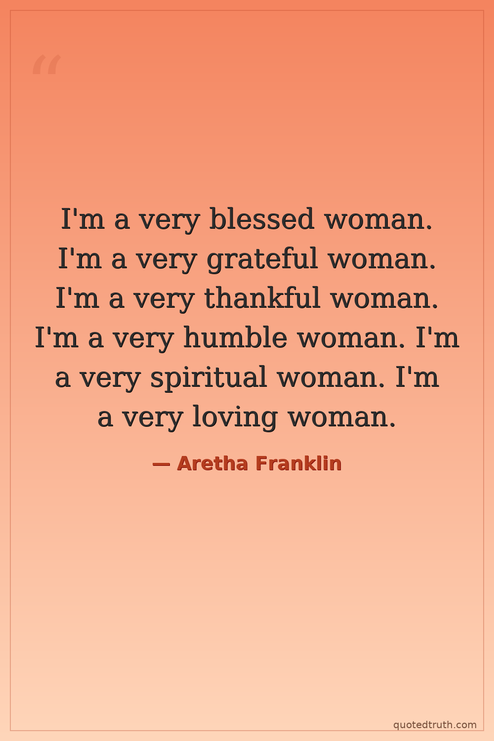 I'm a very blessed woman. I'm a very grateful woman. I'm a very thankful woman. I'm a very humble woman. I'm a very spiritual woman. I'm a very loving woman.