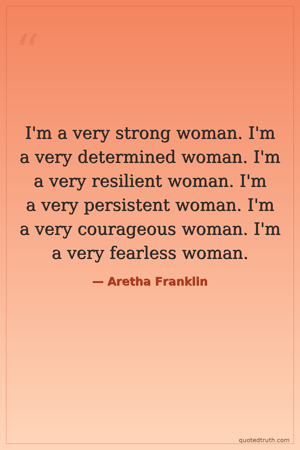 I'm a very strong woman. I'm a very determined woman. I'm a very resilient woman. I'm a very persistent woman. I'm a very courageous woman. I'm a very fearless woman.