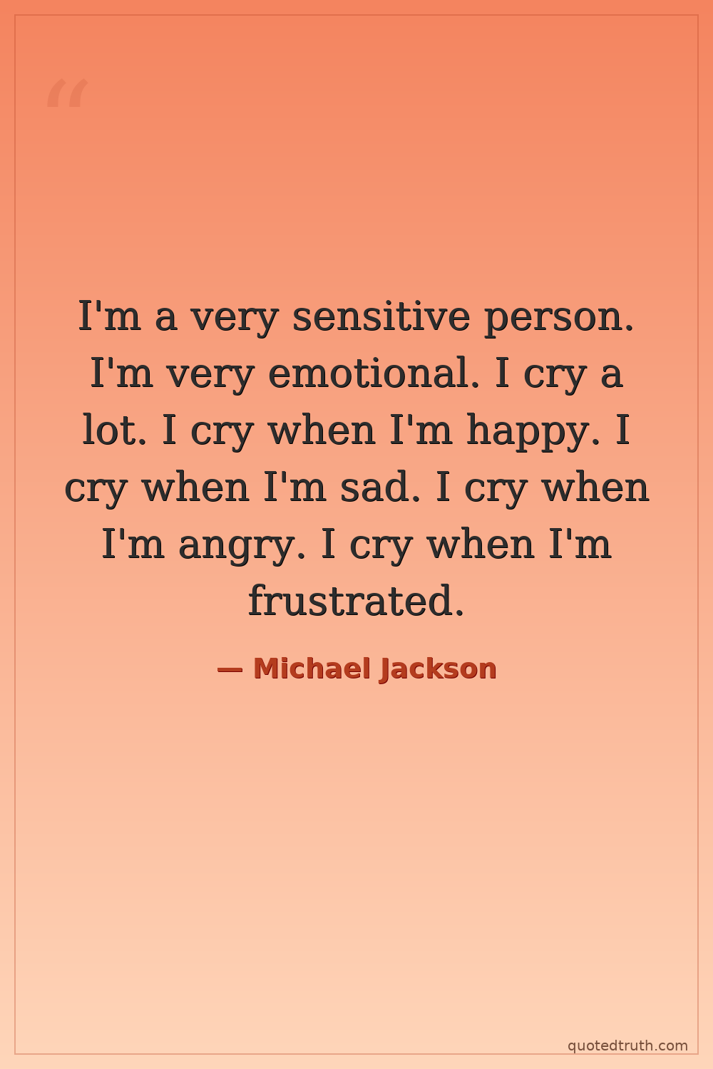 I'm a very sensitive person. I'm very emotional. I cry a lot. I cry when I'm happy. I cry when I'm sad. I cry when I'm angry. I cry when I'm frustrated.