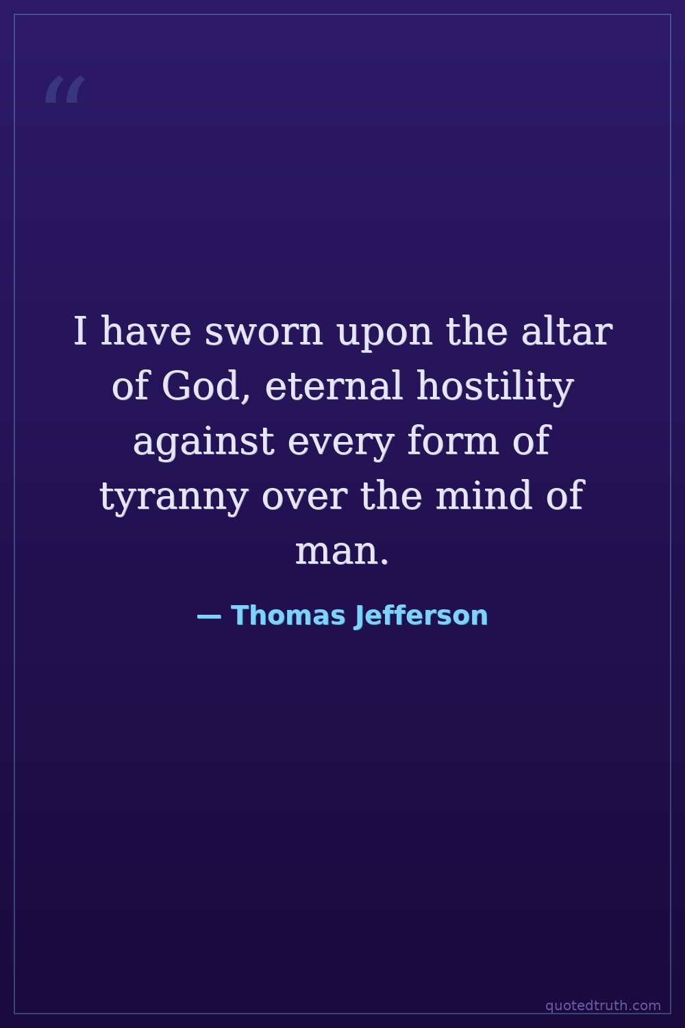 I have sworn upon the altar of God, eternal hostility against every form of tyranny over the mind of man.