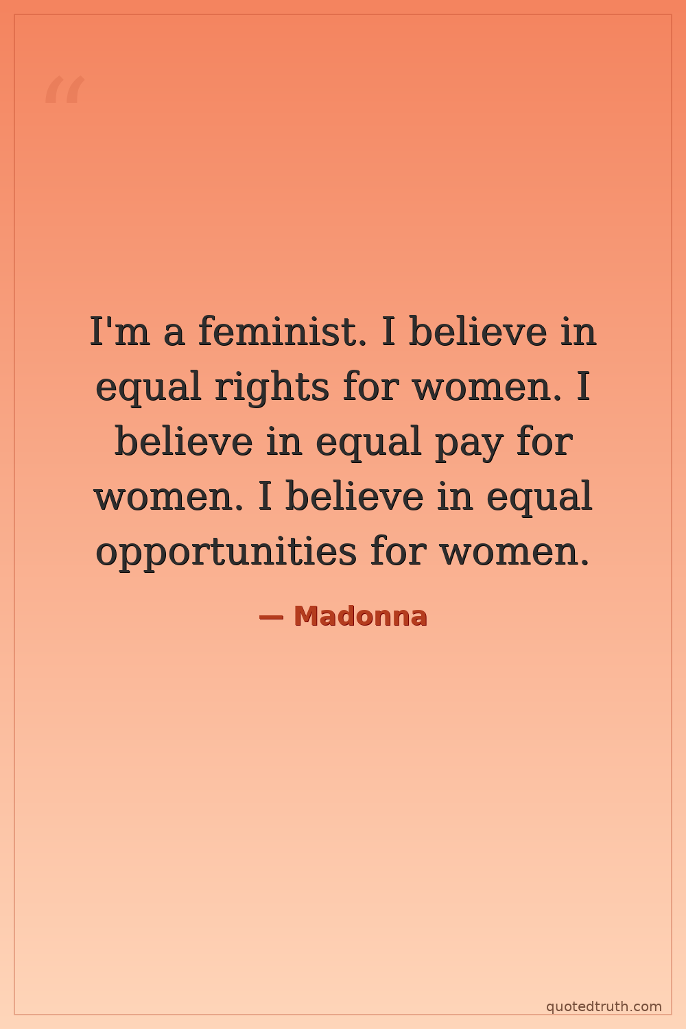 I'm a feminist. I believe in equal rights for women. I believe in equal pay for women. I believe in equal opportunities for women.