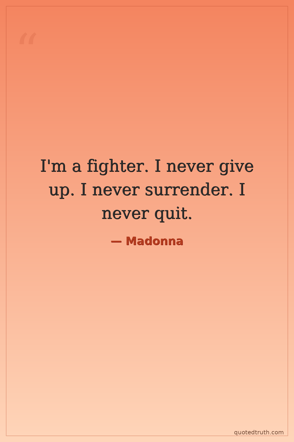 I'm a fighter. I never give up. I never surrender. I never quit.
