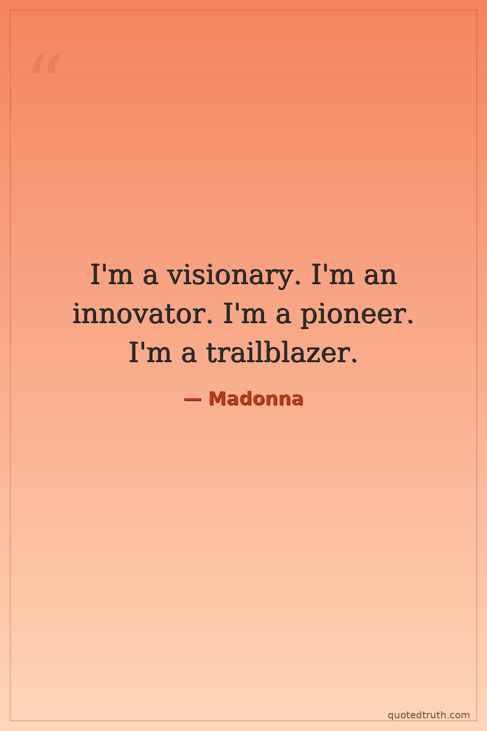 I'm a visionary. I'm an innovator. I'm a pioneer. I'm a trailblazer.