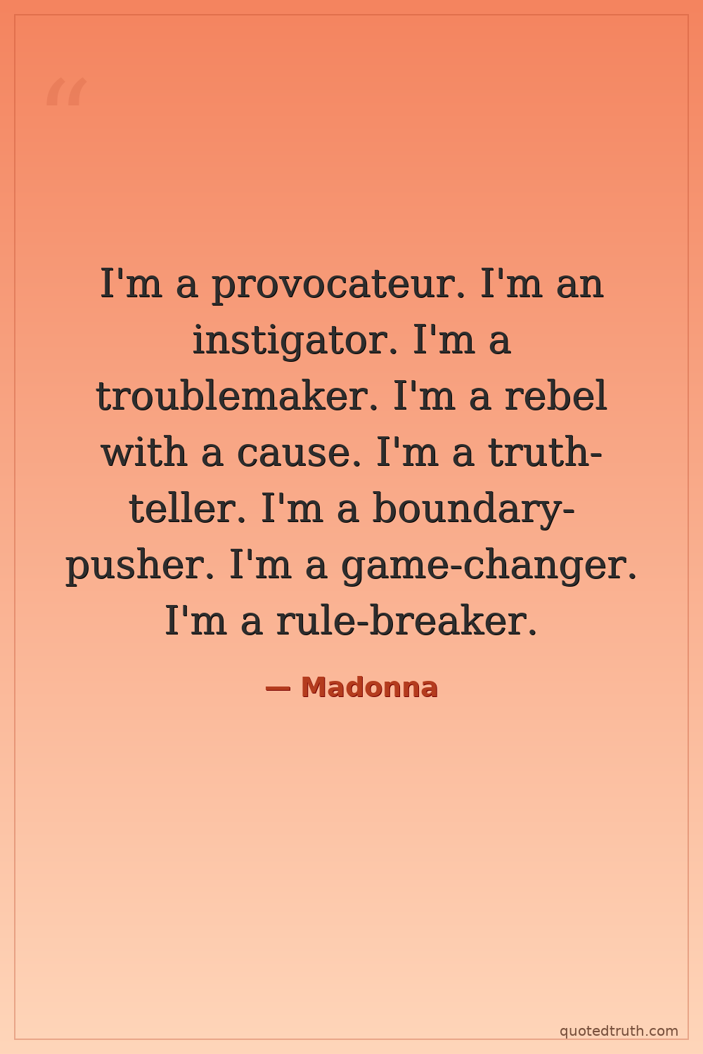 I'm a provocateur. I'm an instigator. I'm a troublemaker. I'm a rebel with a cause. I'm a truth-teller. I'm a boundary-pusher. I'm a game-changer. I'm a rule-breaker.