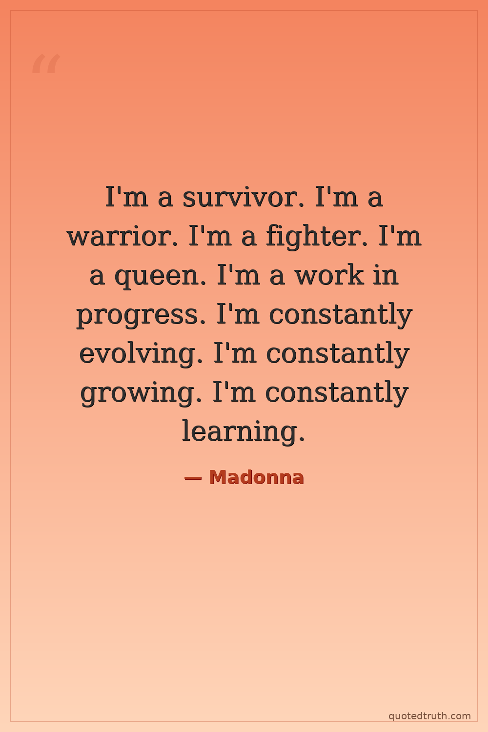 I'm a survivor. I'm a warrior. I'm a fighter. I'm a queen. I'm a work in progress. I'm constantly evolving. I'm constantly growing. I'm constantly learning.