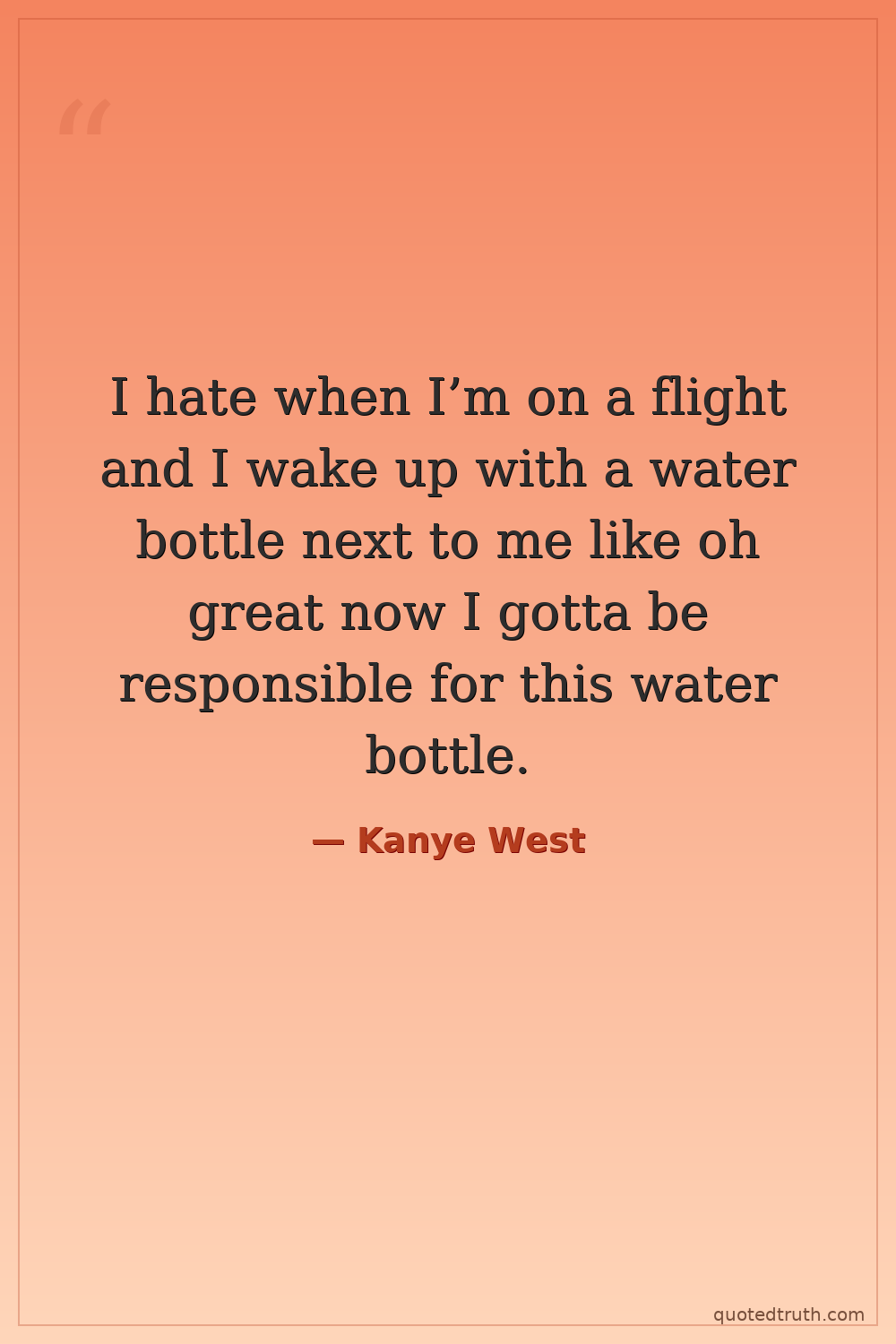 I hate when I’m on a flight and I wake up with a water bottle next to me like oh great now I gotta be responsible for this water bottle.