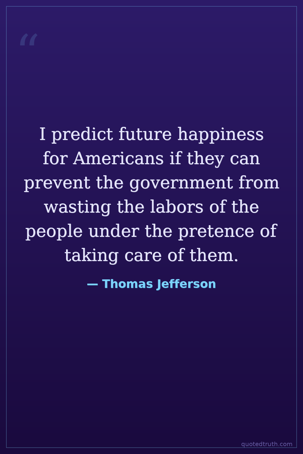I predict future happiness for Americans if they can prevent the government from wasting the labors of the people under the pretence of taking care of them.