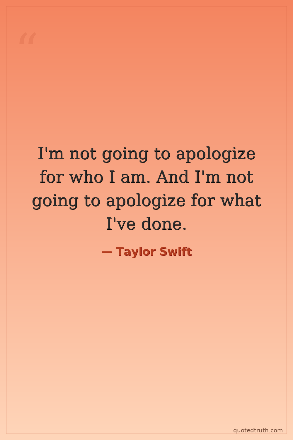 I'm not going to apologize for who I am. And I'm not going to apologize for what I've done.