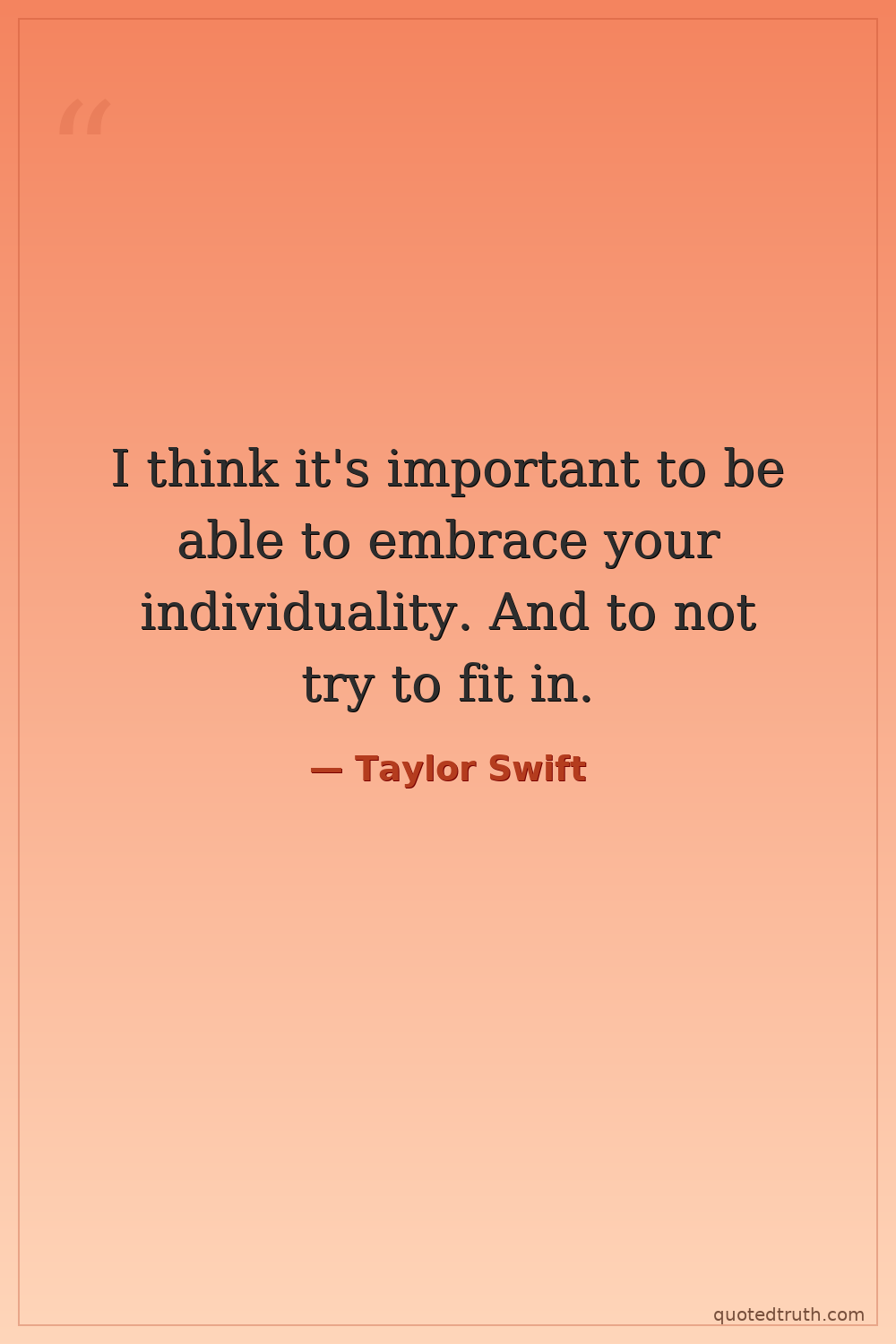 I think it's important to be able to embrace your individuality. And to not try to fit in.