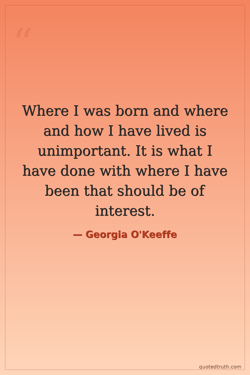 Where I was born and where and how I have lived is unimportant. It is what I have done with where I have been that should be of interest.