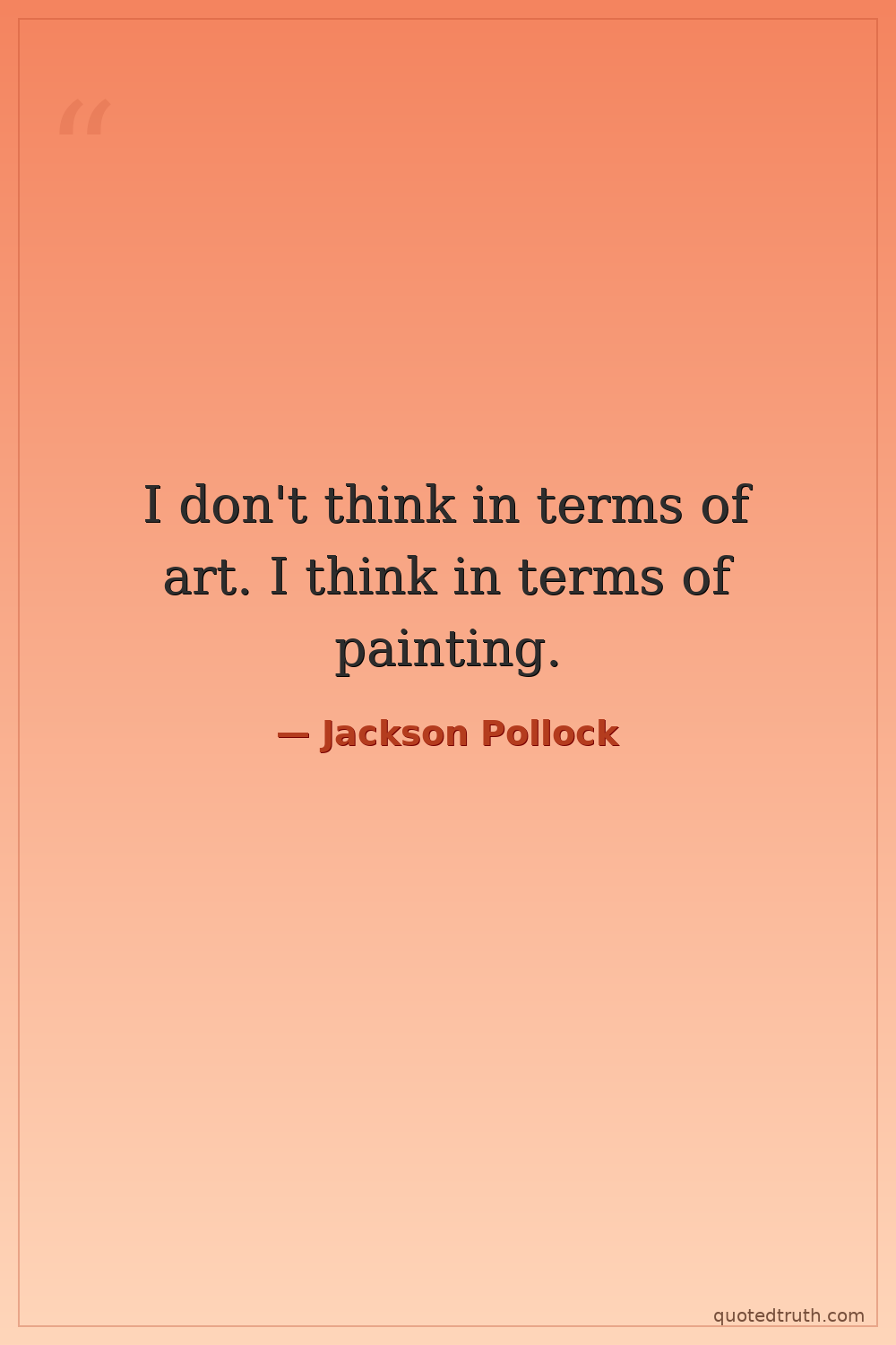 I don't think in terms of art. I think in terms of painting.