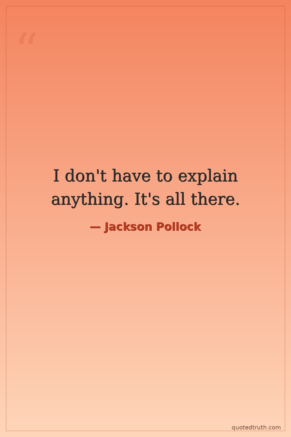 Humorous"My painting does not come from the easel. I prefer to tack the unstretched canvas to the hard wall or the floor. I need the resistance of a hard surface. On the floor I am more at ease. I feel nearer,…"
