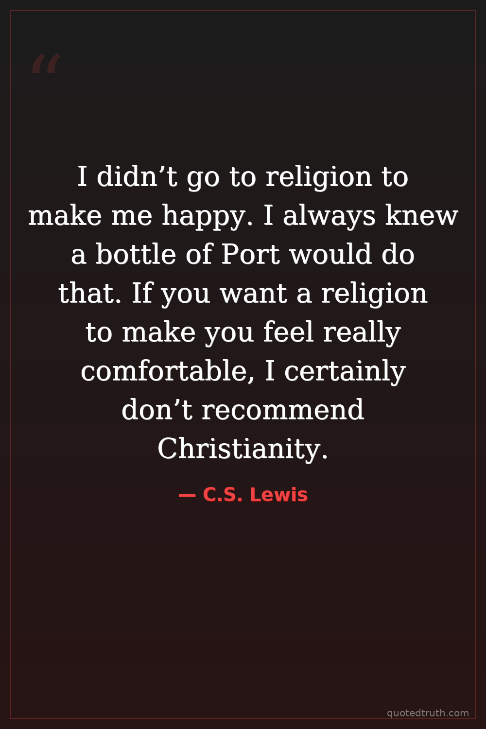 I didn’t go to religion to make me happy. I always knew a bottle of Port would do that. If you want a religion to make you feel really comfortable, I certainly don’t recommend Christianity.