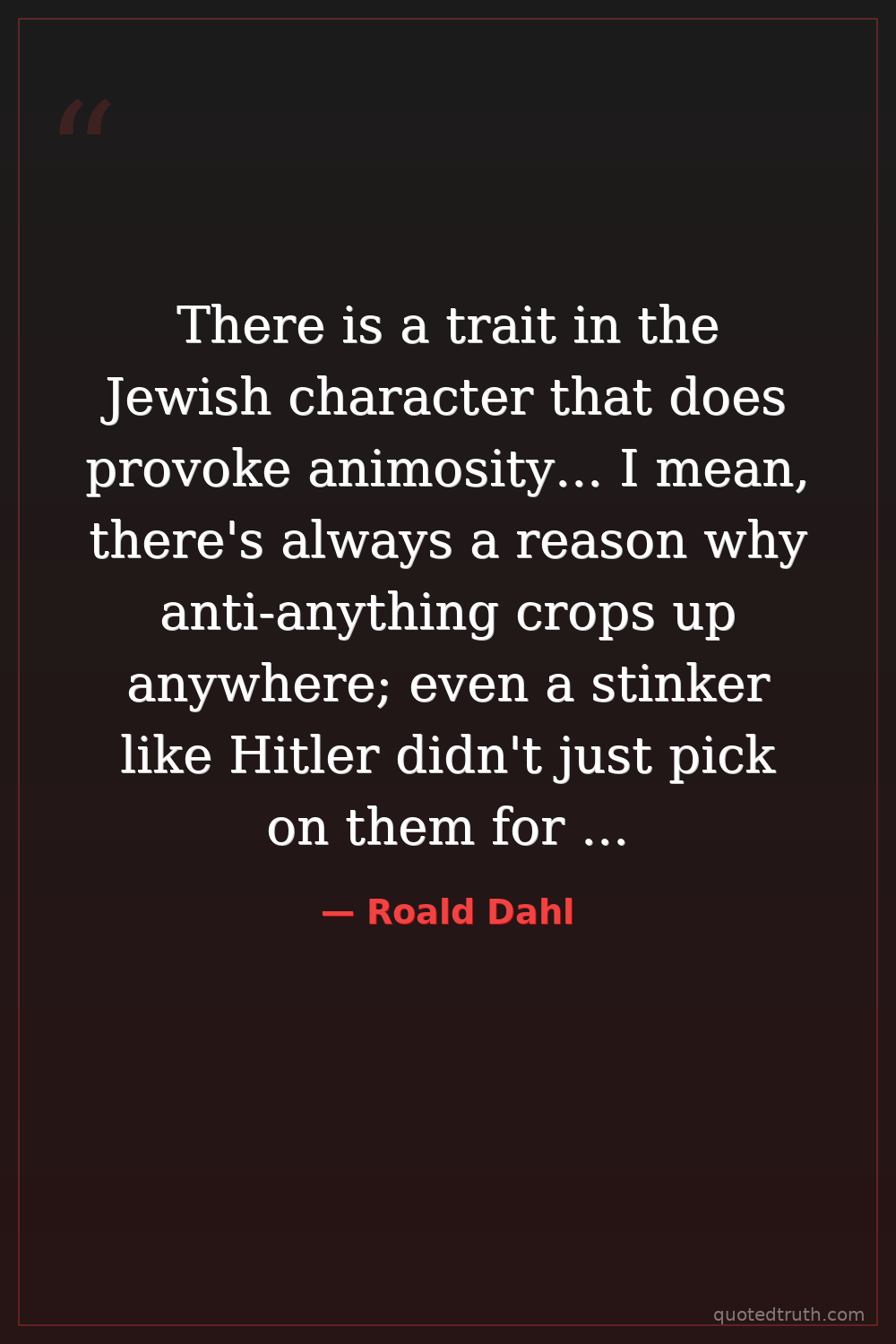 There is a trait in the Jewish character that does provoke animosity... I mean, there's always a reason why anti-anything crops up anywhere; even a stinker like Hitler didn't just pick on them for no reason.