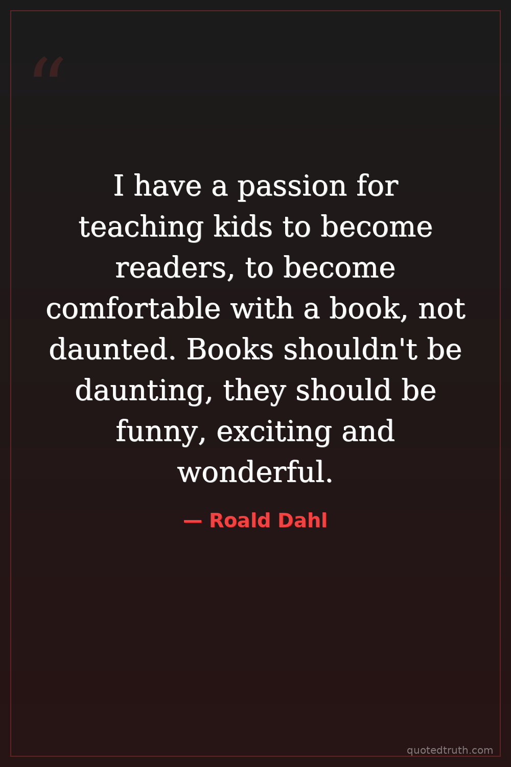 I have a passion for teaching kids to become readers, to become comfortable with a book, not daunted. Books shouldn't be daunting, they should be funny, exciting and wonderful.