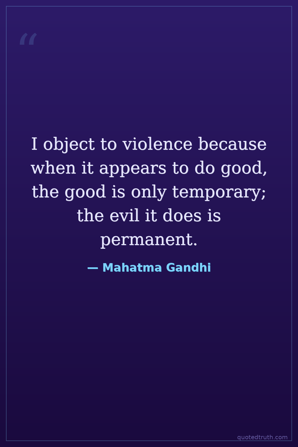 I object to violence because when it appears to do good, the good is only temporary; the evil it does is permanent.