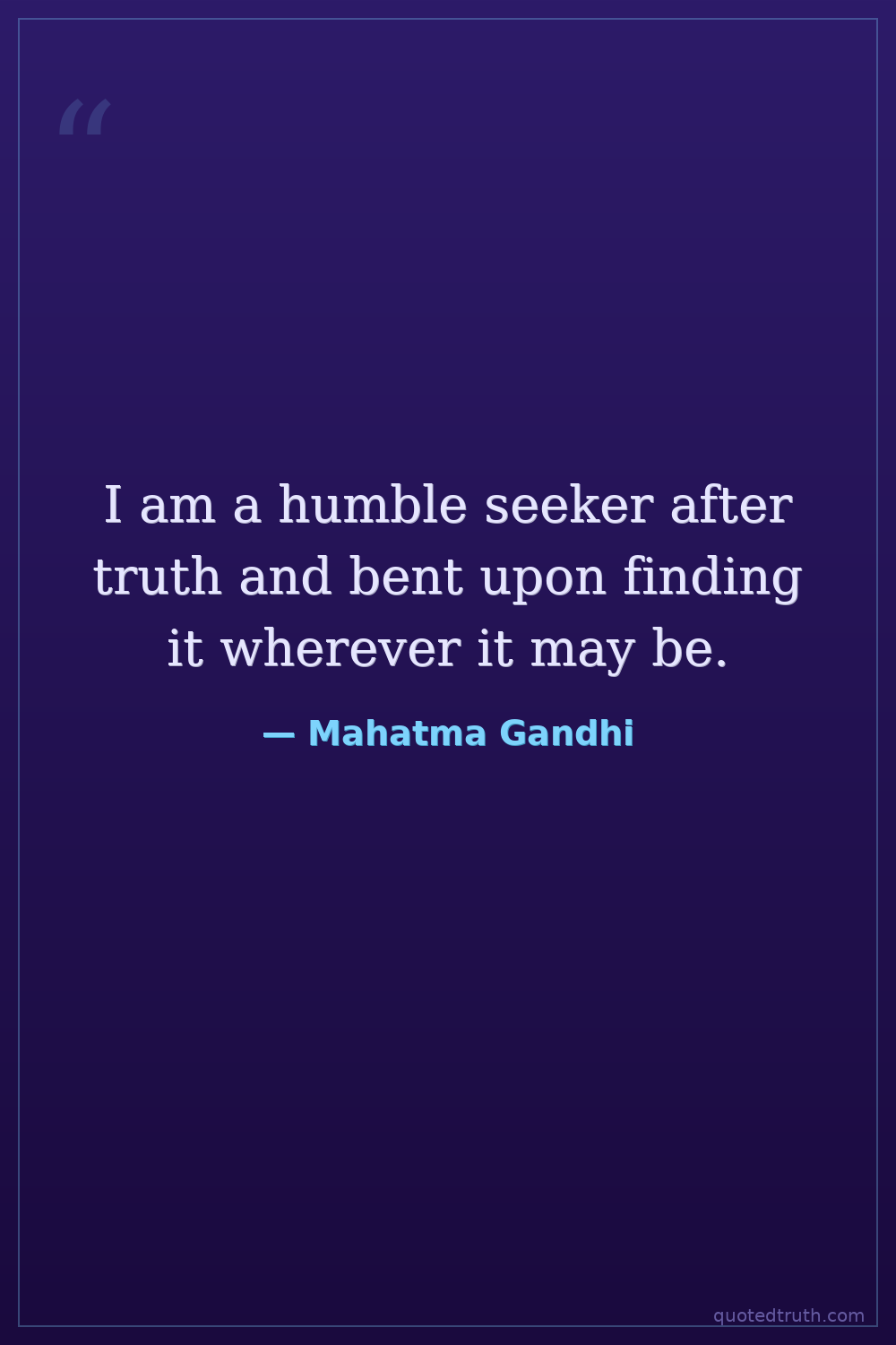 I am a humble seeker after truth and bent upon finding it wherever it may be.