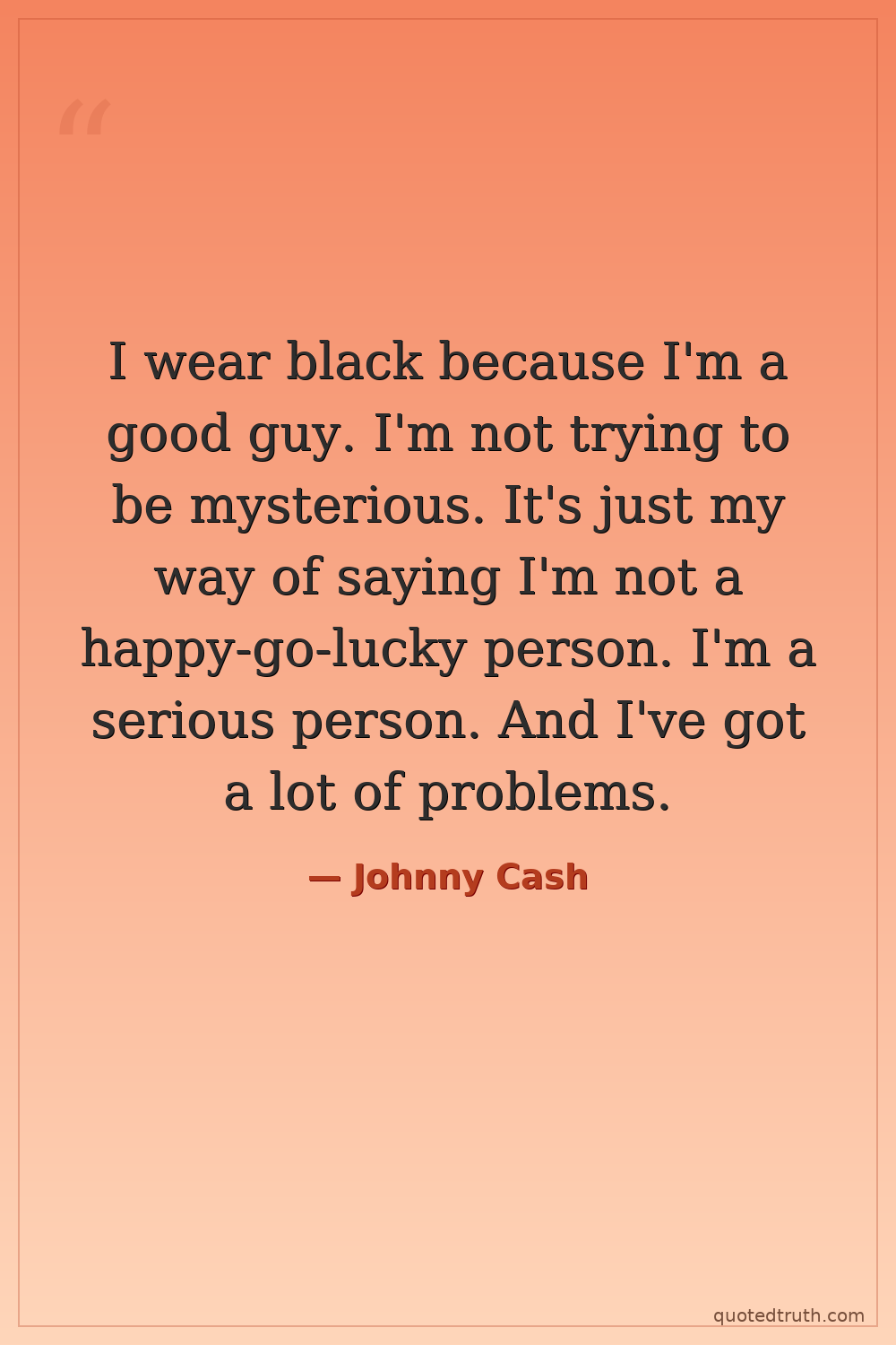 I wear black because I'm a good guy. I'm not trying to be mysterious. It's just my way of saying I'm not a happy-go-lucky person. I'm a serious person. And I've got a lot of problems.