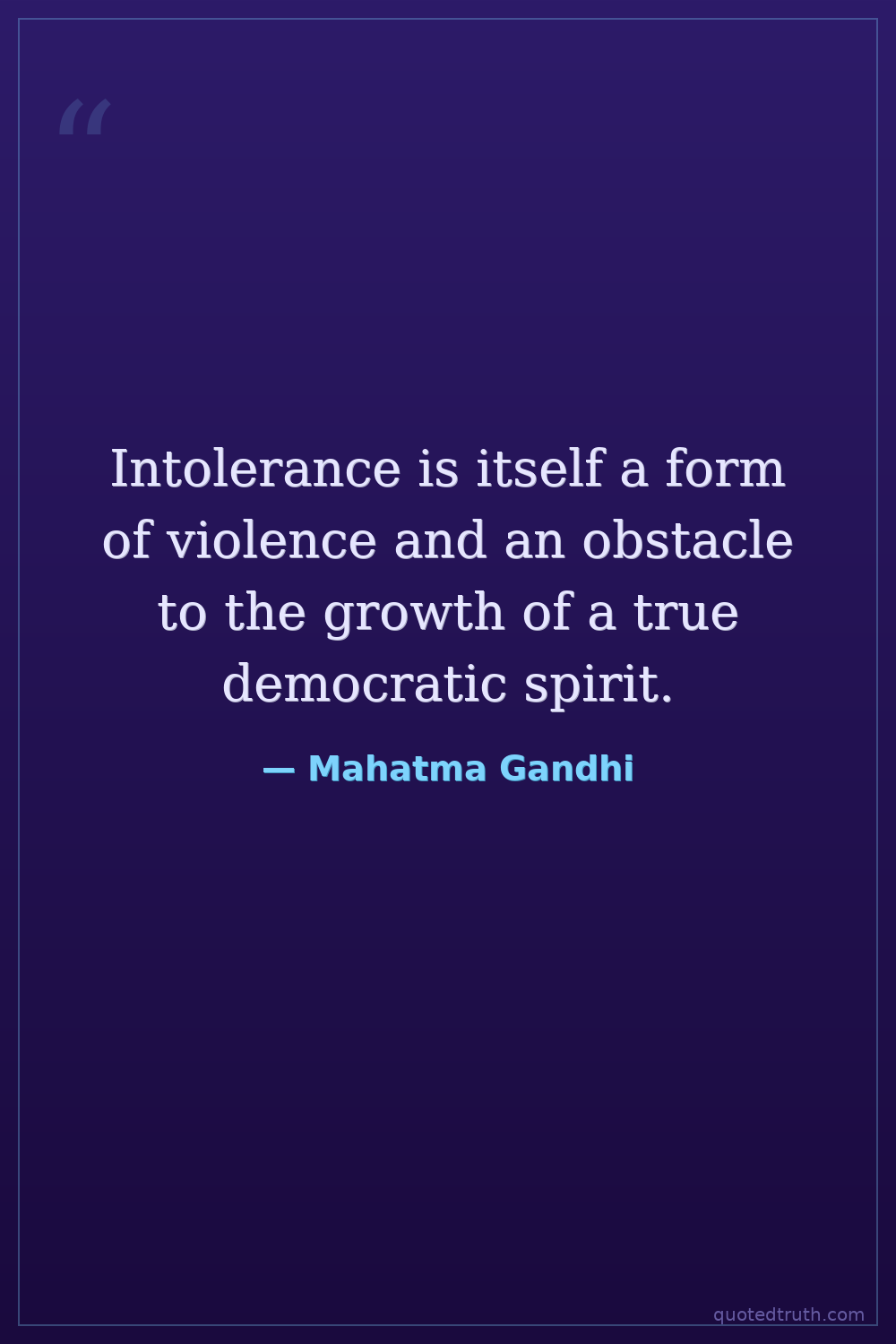 Intolerance is itself a form of violence and an obstacle to the growth of a true democratic spirit.