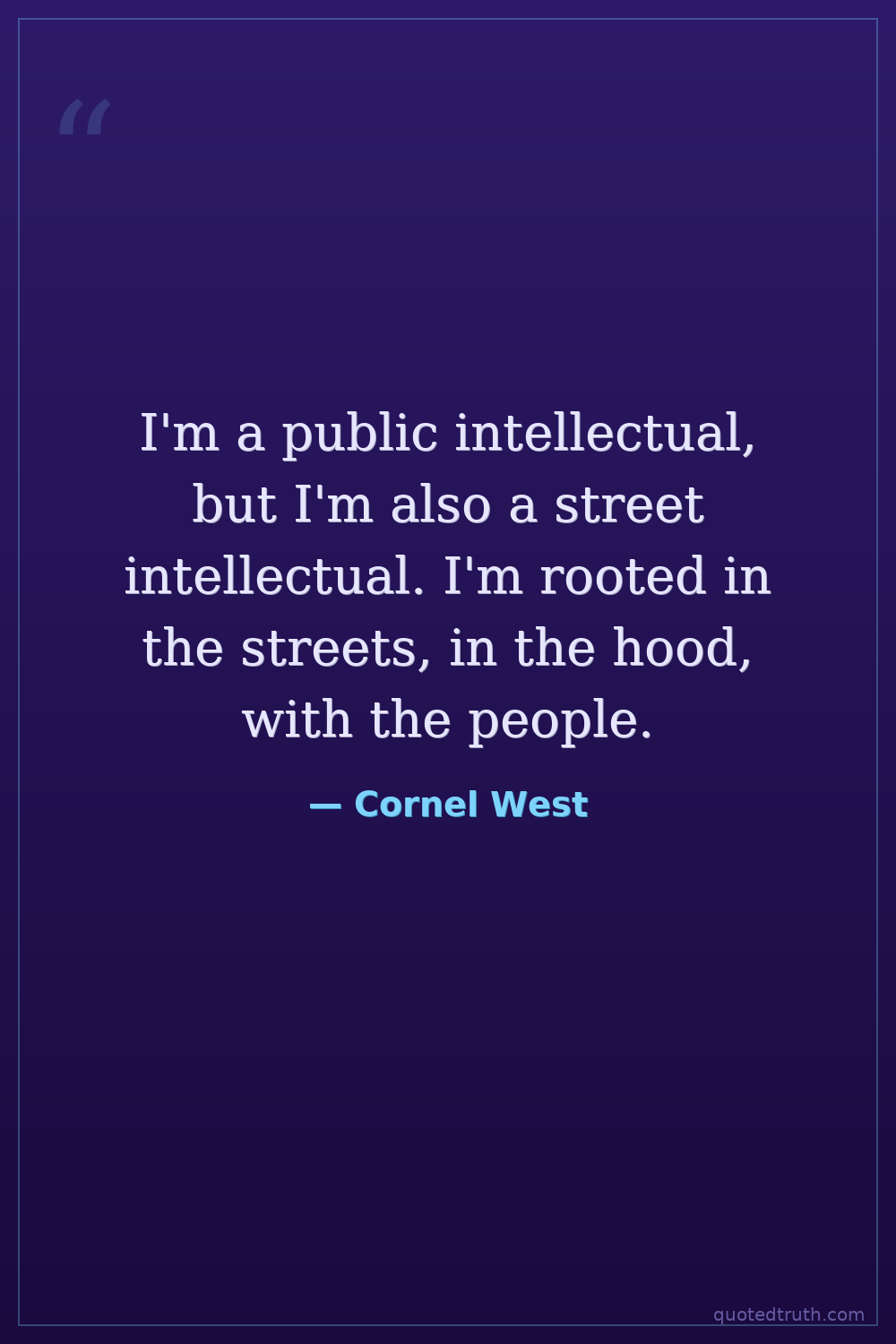 I'm a public intellectual, but I'm also a street intellectual. I'm rooted in the streets, in the hood, with the people.