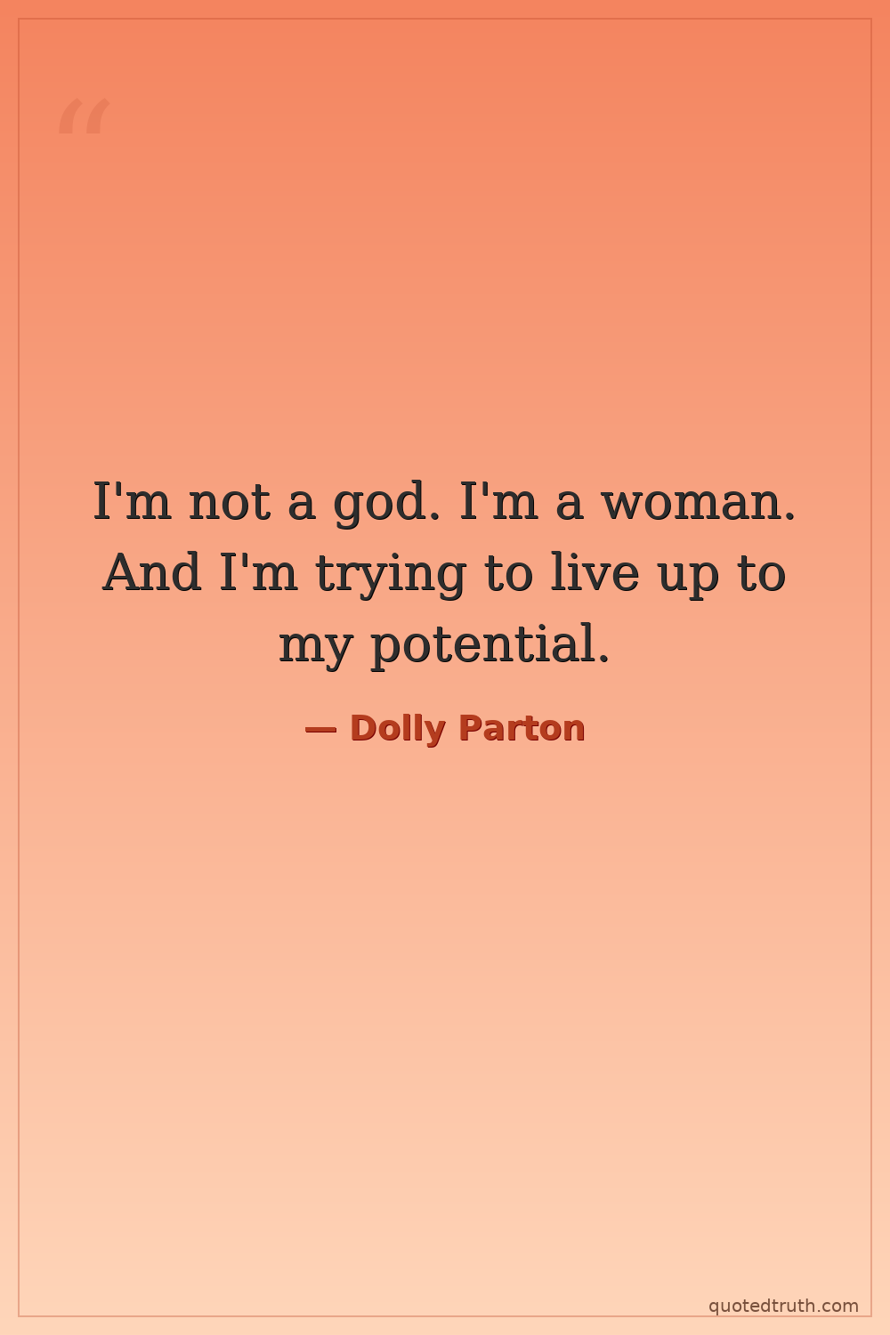 I'm not a god. I'm a woman. And I'm trying to live up to my potential.