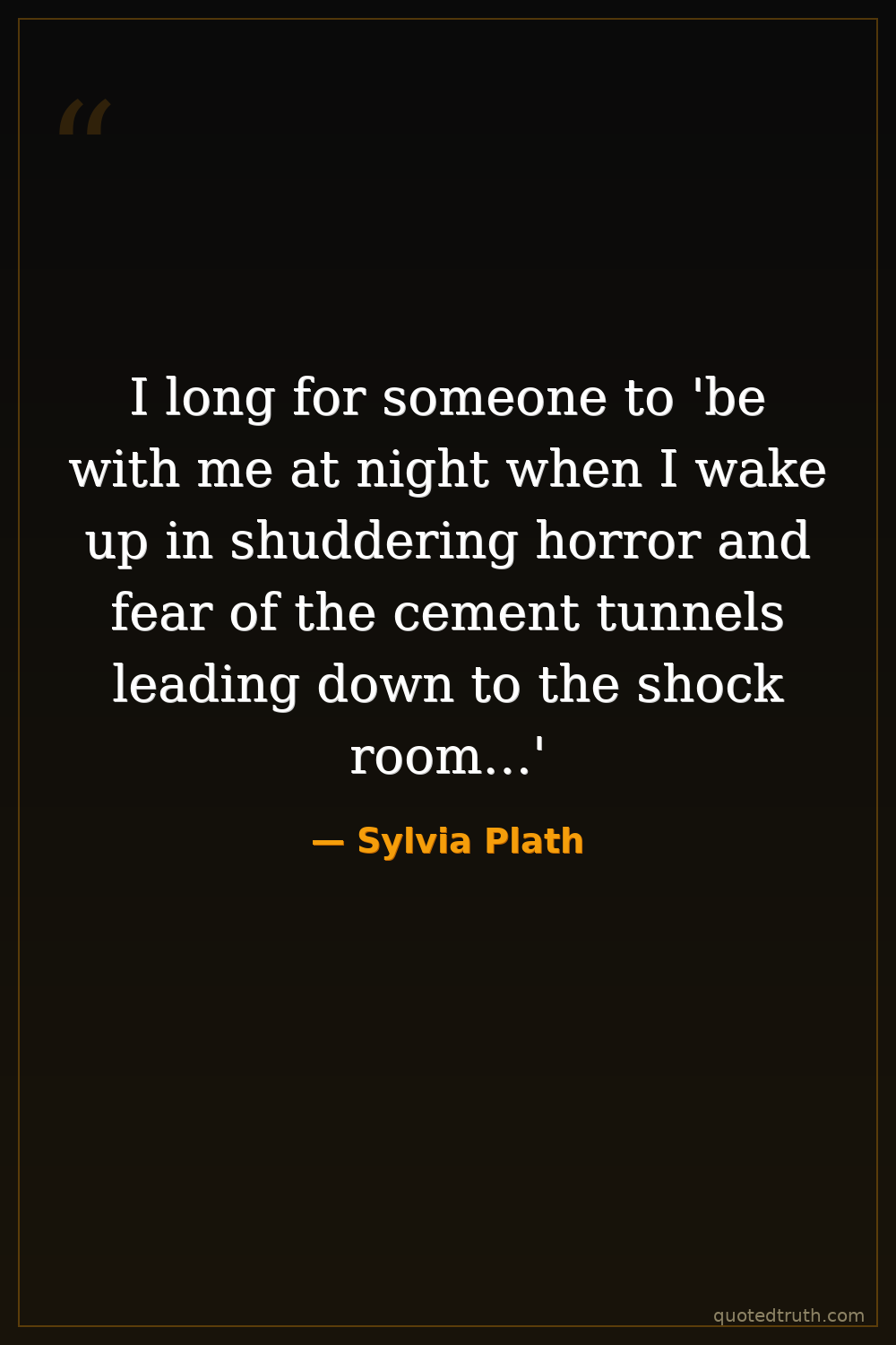 I long for someone to 'be with me at night when I wake up in shuddering horror and fear of the cement tunnels leading down to the shock room…'
