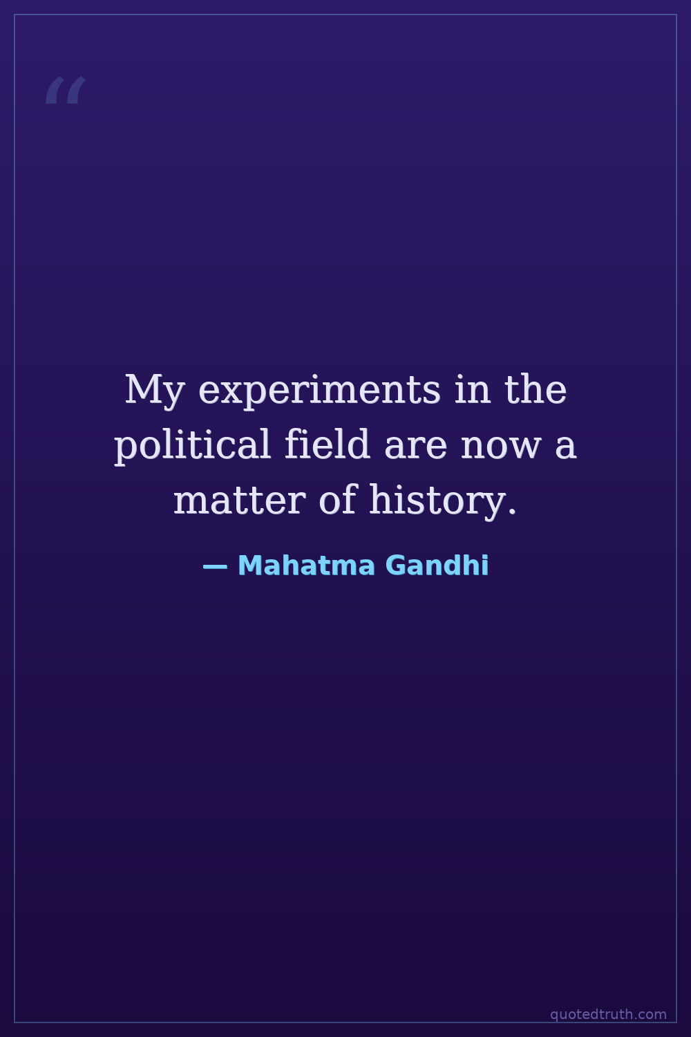 My experiments in the political field are now a matter of history.