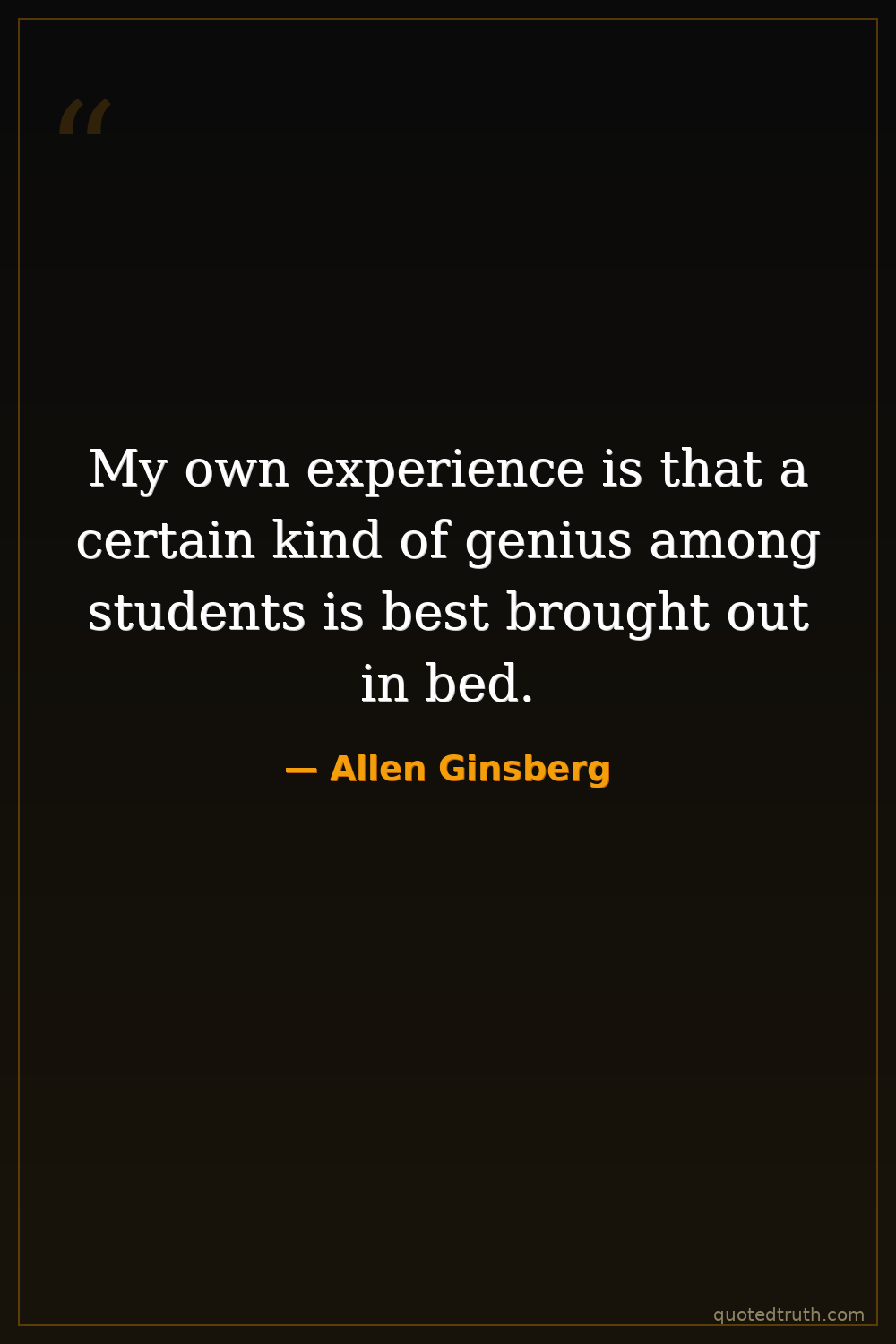 My own experience is that a certain kind of genius among students is best brought out in bed.