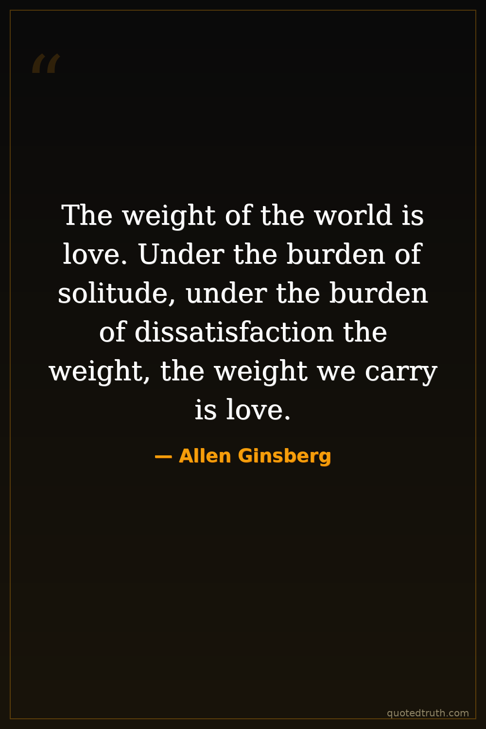 The weight of the world is love. Under the burden of solitude, under the burden of dissatisfaction the weight, the weight we carry is love.