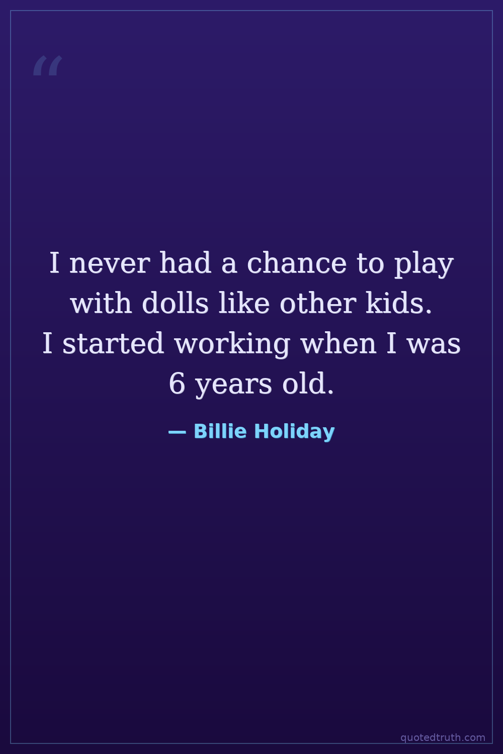 I never had a chance to play with dolls like other kids. I started working when I was 6 years old.