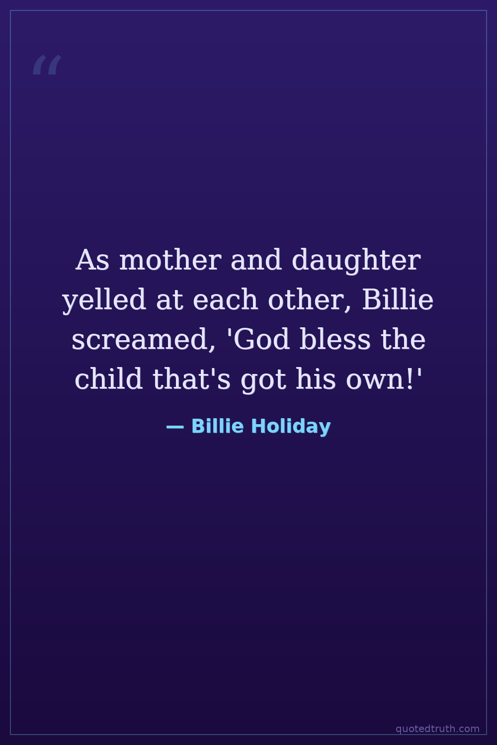 As mother and daughter yelled at each other, Billie screamed, 'God bless the child that's got his own!'