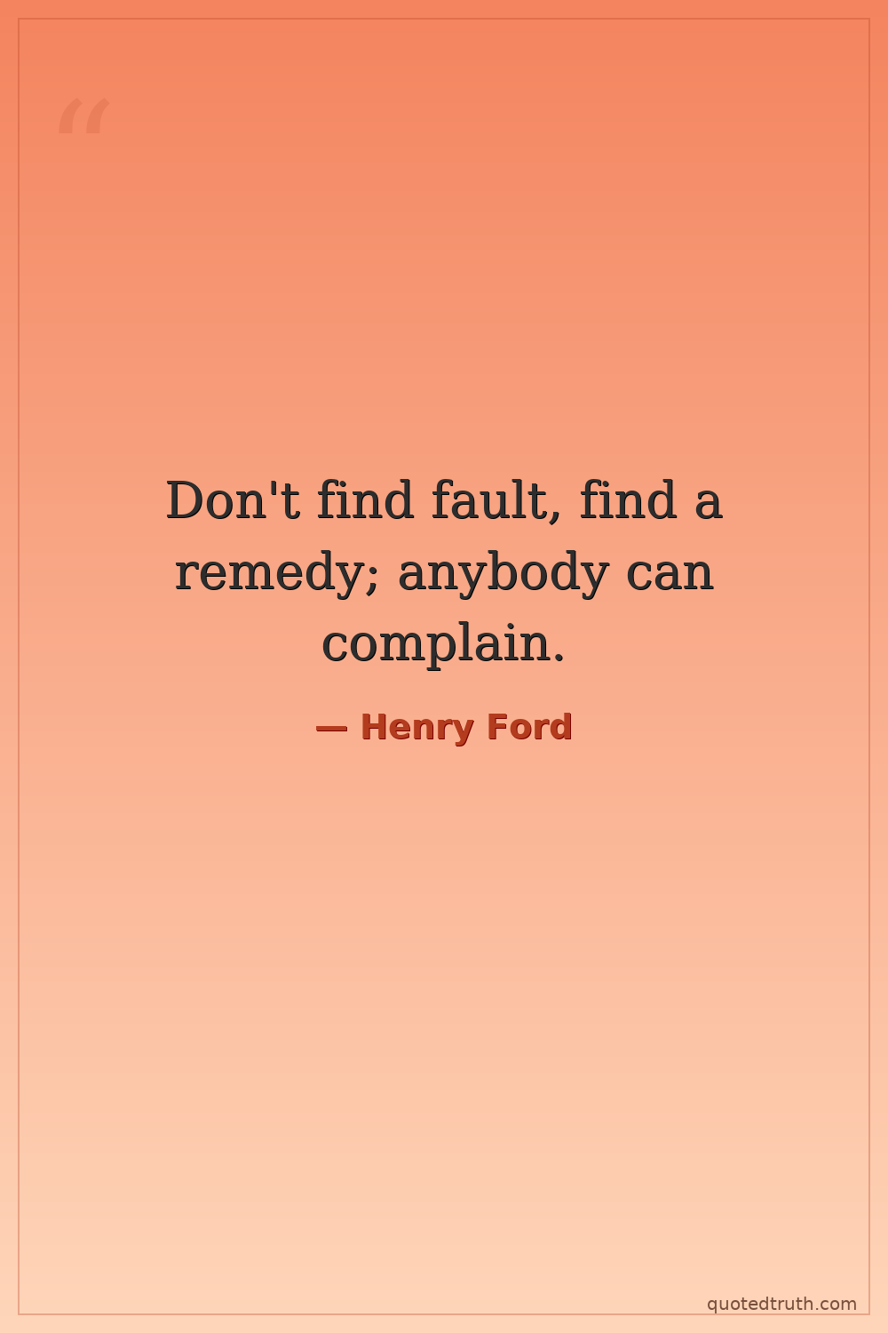 Don't find fault, find a remedy; anybody can complain.