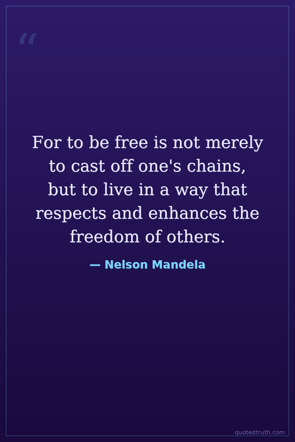 For to be free is not merely to cast off one's chains, but to live in a way that respects and enhances the freedom of others.