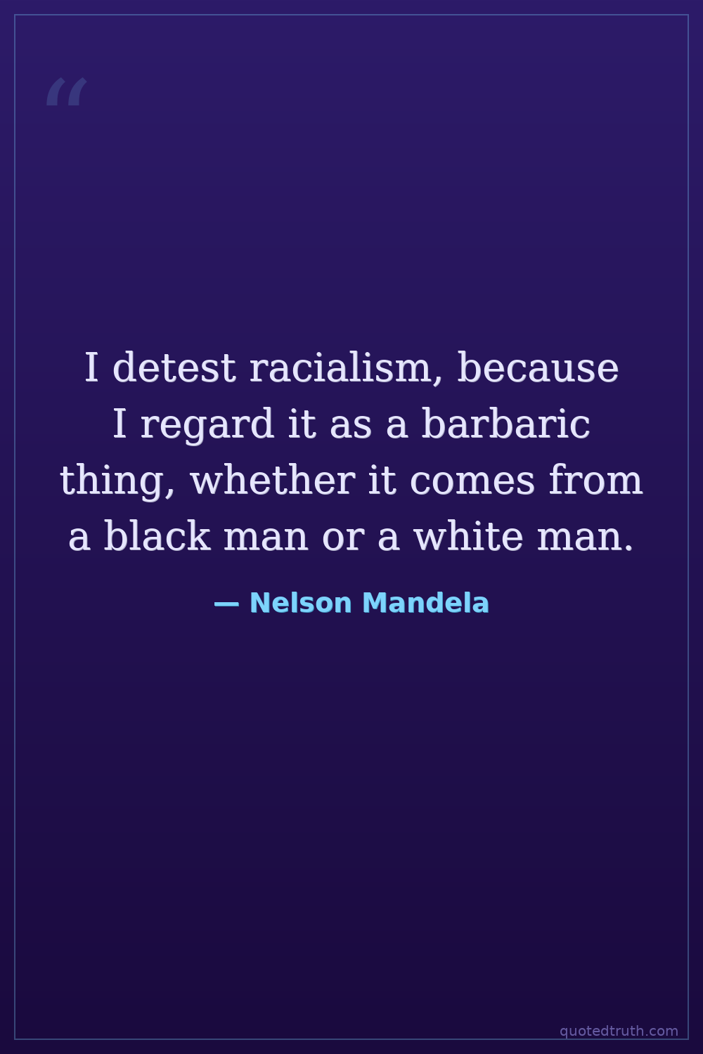 I detest racialism, because I regard it as a barbaric thing, whether it comes from a black man or a white man.