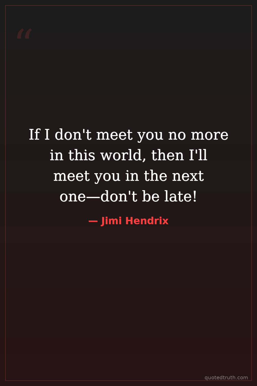 If I don't meet you no more in this world, then I'll meet you in the next one—don't be late!