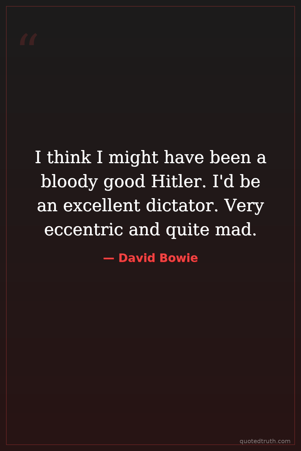 I think I might have been a bloody good Hitler. I'd be an excellent dictator. Very eccentric and quite mad.