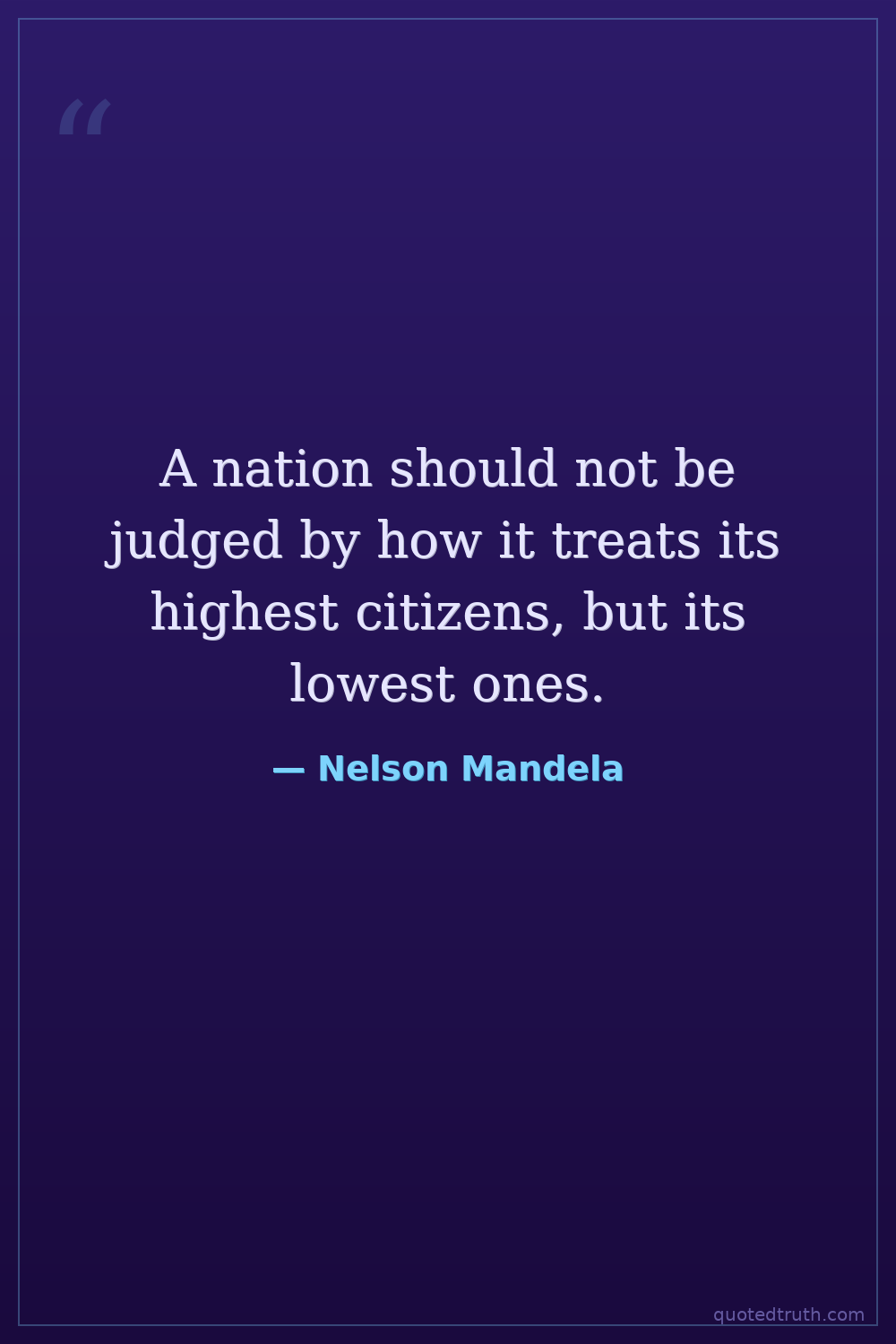 A nation should not be judged by how it treats its highest citizens, but its lowest ones.