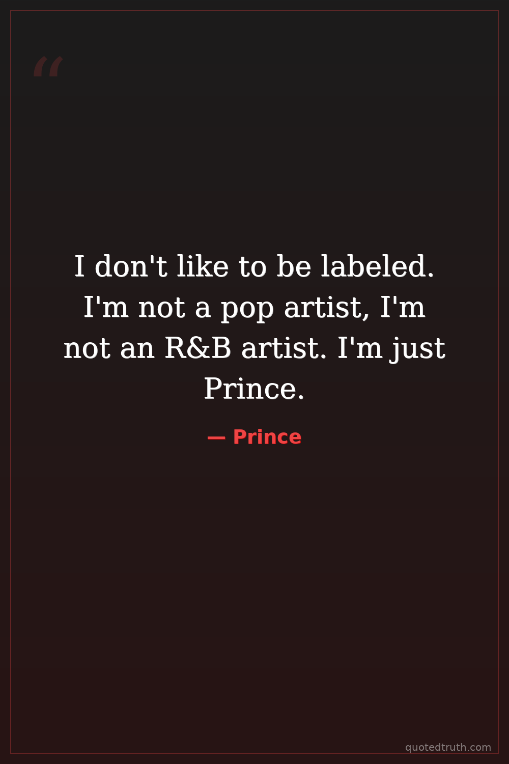I don't like to be labeled. I'm not a pop artist, I'm not an R&B artist. I'm just Prince.