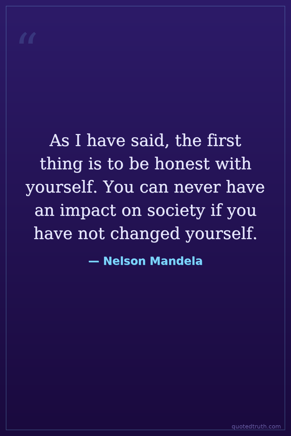 As I have said, the first thing is to be honest with yourself. You can never have an impact on society if you have not changed yourself.