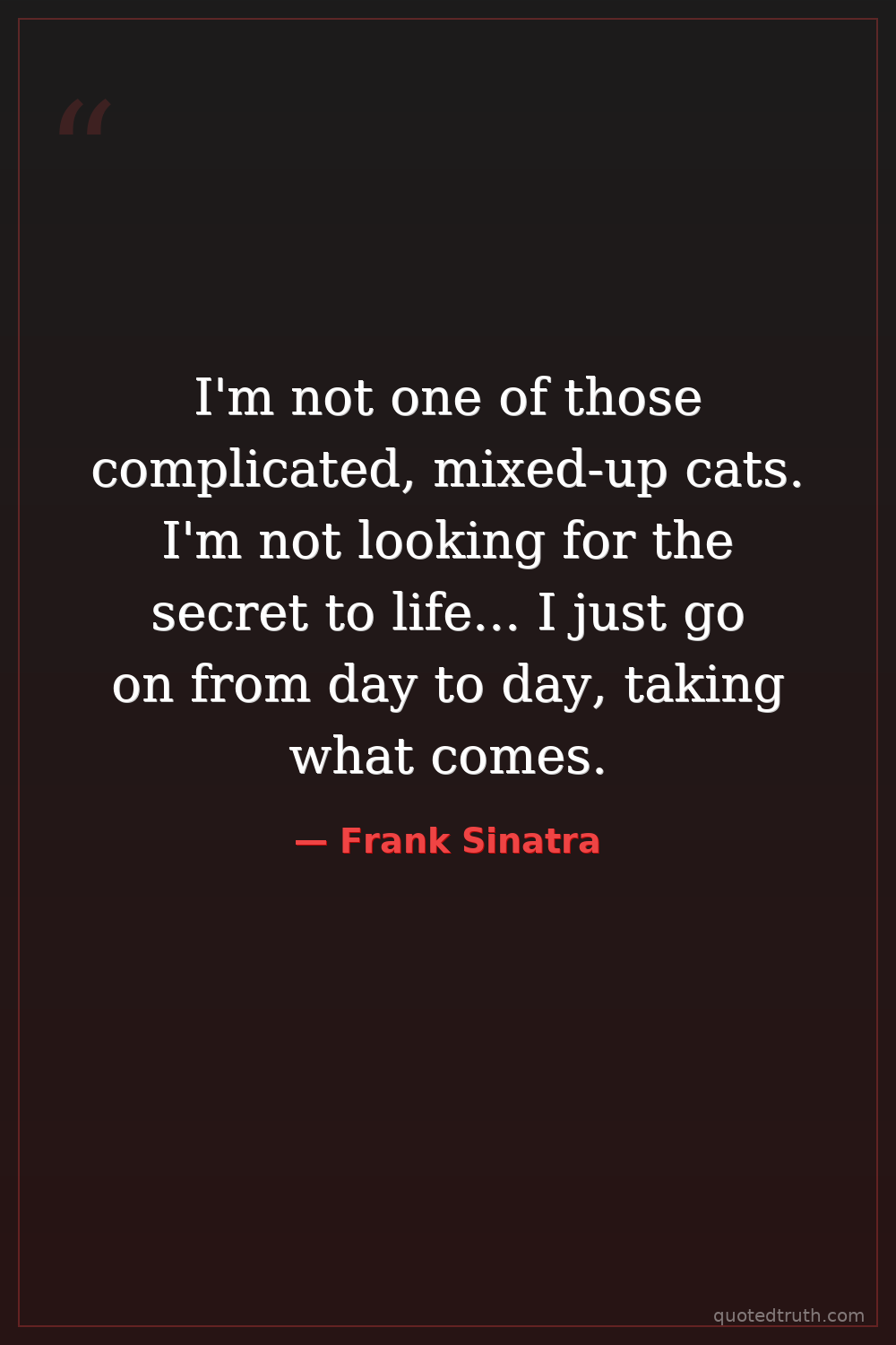 I'm not one of those complicated, mixed-up cats. I'm not looking for the secret to life... I just go on from day to day, taking what comes.