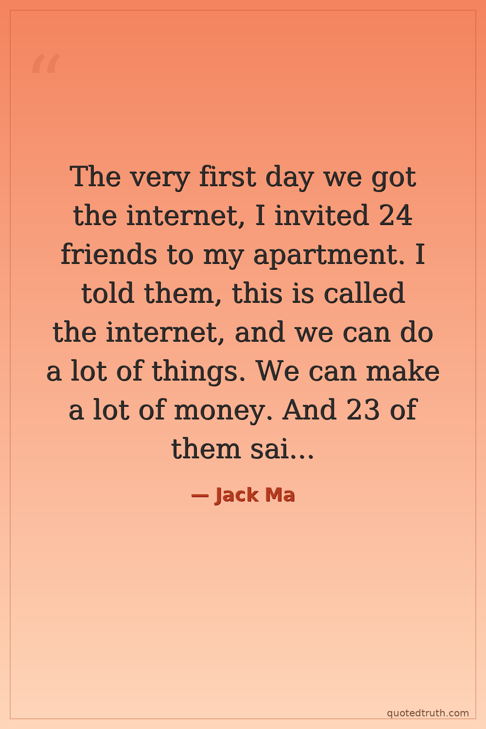The very first day we got the internet, I invited 24 friends to my apartment. I told them, this is called the internet, and we can do a lot of things. We can make a lot of money. And 23 of them said, 'Forget it.' One guy said, 'Let's try it.'