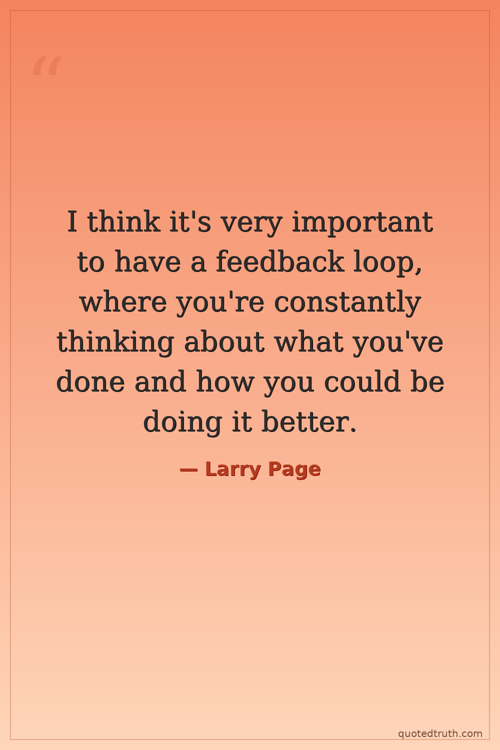 I think it's very important to have a feedback loop, where you're constantly thinking about what you've done and how you could be doing it better.